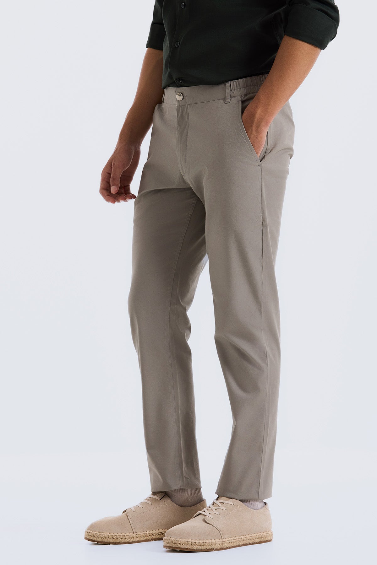 The inclusion of elastane in these cotton pants for men provides flexibility without compromising on the crisp look of cotton. Whether you're sitting in the office or on the move, these pants adapt to your lifestyle, offering comfort all day long.